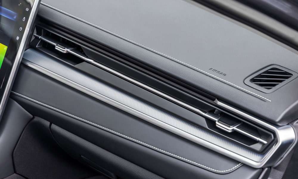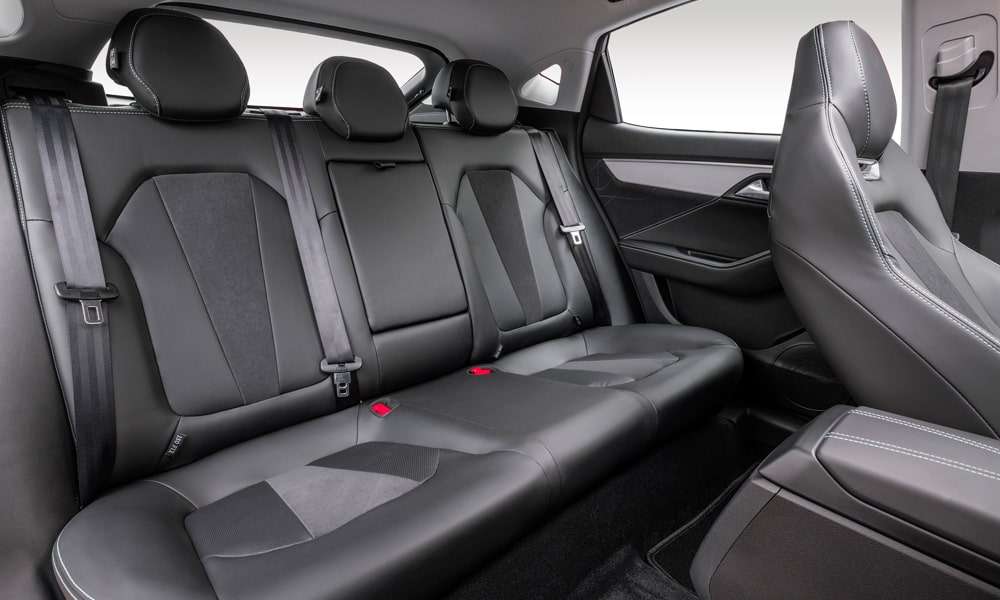 - Кожаная отделка сидений черного цвета с декоративной прострочкой, перфорацией и декоративными вставками